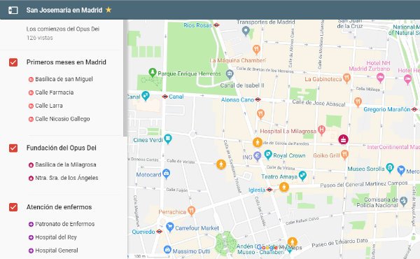 La conocida aplicación Google maps ha servido para preparar un mapa sobre los primeros años del Opus Dei , y así ilustrar mejor la biografía de San Josemaría.