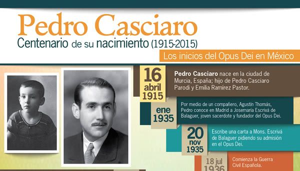 Para celebrar este aniversario ofrecemos una línea de vida de don Pedro Casciaro, sacerdote español que impulsó los inicios del Opus Dei en México.