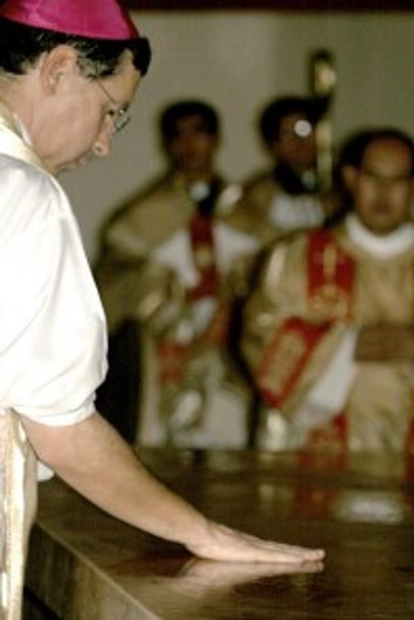 Una vez preparado el altar, el obispo celebra la Eucaristía, que es la parte principal y más antigua del rito.