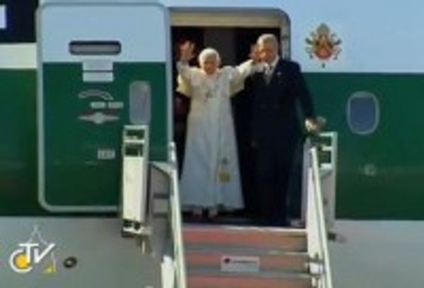 Más de 3 mil personas dentro del aeropuerto y miles más en los alrededores, dieron una entusiasta bienvenida a Benedicto XVI. Recogemos algunos fragmentos de sus primeras palabras en tierras guanajuatenses .