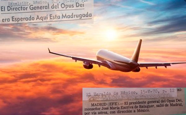 Mientras el avión cruzaba el Atlántico y dejaba atrás España, la noticia del viaje de San Josemaría a América comenzó a propagarse, las emisoras mexicanas, difundían la noticia: “Monseñor Escrivá de Balaguer, rumbo a México”.El 15 de mayo El Heraldo de México publicó: «Madrid (EFE).—El presidente general del Opus Dei, monseñor José María Escriva de Balaguer (sic), salió de Madrid, por vía aérea, con dirección a México». El Sol de México también recogió la noticia en la página 11 de su publicación: «Viene a México el Presidente del Opus Dei. [...] Monseñor Escriva (sic) de Balaguer, a quien acompaña el secretario general de la obra, llegó a Madrid procedente de Roma y, tras una breve escala en el aeropuerto madrileño de Barajas, continuó su viaje hacia México».