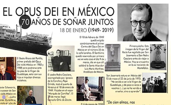El 18 de enero de 1949 llegó por primera vez don Pedro Casciaro a México para comenzar con la labor del Opus Dei en el continente. A 70 años de este suceso, presentamos un infografico con los datos más importantes de esas fechas.
