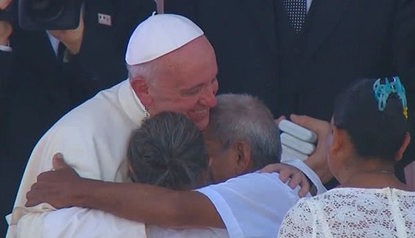 Manuel, un chico con distrofia muscular que evangeliza desde su silla de ruedas, dijo que ir a la iglesia cambió su vida familiar, y concluyó su breve intervención diciendo que los adolescentes y jóvenes son los consentidos de Dios. Francisco también escuchó el testimonio de una pareja de divorciados vueltos a casar, de un matrimonio que celebró sus bodas de oro, y de una madre soltera de la Ciudad de México que, a pesar de sus difíciles circunstancias, optó por decirle “no” a la tentación del aborto.