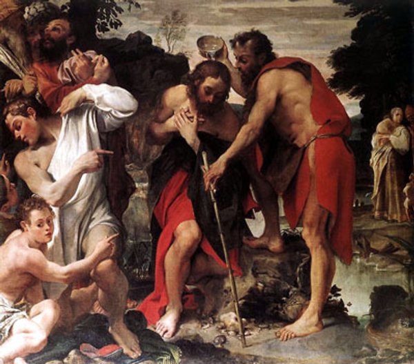 2. El bautismo de Jesús . Los especialistas no dudan de la historicidad del hecho, entre otras cosas porque su inclusión en los evangelios planteaba ciertas dificultades: una, la posible interpretación de que el Bautista era superior al bautizado, a Jesús, y otra, que siendo un bautismo de penitencia podría pensarse que Jesús tenía conciencia de ser pecador. Los sinópticos dejan claro en sus relatos que Juan se reconoce inferior: rehúsa bautizar a Jesús (Mt 3,13-17), la voz del cielo revela la dignidad divina de Jesús (Mc 1,9-11), y el cuarto evangelio que no relata el bautismo señala que el Bautista da testimonio de haber visto posarse la paloma sobre Jesús (Jn 1,29-34) y de su propia inferioridad (Jn 3,28). Si embargo, no se deduce de ahí inmediatamente que Jesús fuera discípulo de Juan el Bautista. Si los evangelistas no detallan que Jesús fue discípulo de Juan es porque no lo fue.