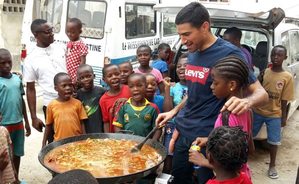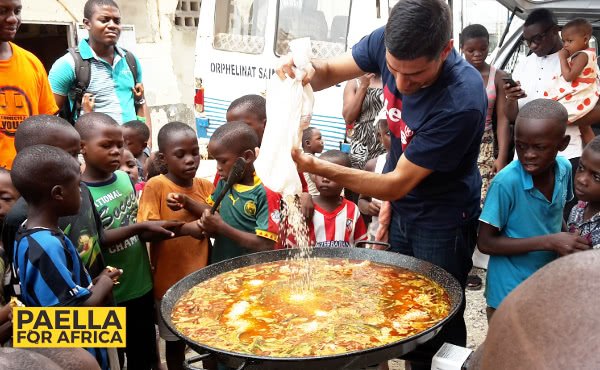 Desde hace dos años Pedro vive en Camerún. Es profesor de español y le encanta cocinar la paella. Con la ayuda de un grupo de universitarios, ha empezado Paella for Africa. Cada domingo ofrecen esta deliciosa receta a los huérfanos y a los niños de la calle de la ciudad de Douala.