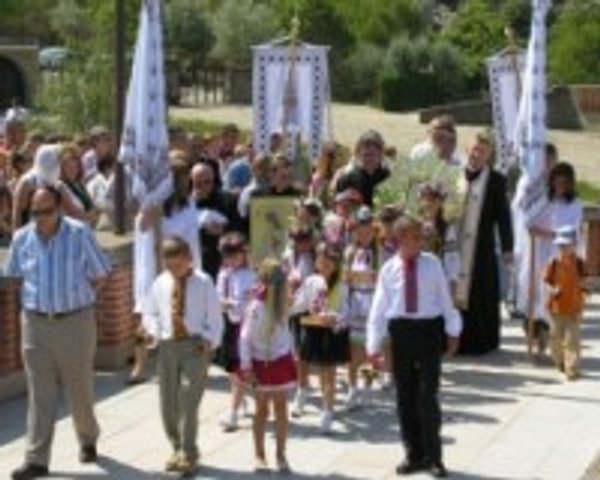 Los actos comenzaron a las 11 horas con la procesión por la explanada del santuario y posterior bendición de los iconos marianos en el presbiterio. Seguidamente, los participantes asistieron a una celebración eucarística de Rito Bizantino en lengua eslava, en la que concelebraron los presbíteros Juri Svistun, sacerdote que atiende a la comunidad greco-católica en Lérida; Ivan Lypka, sacerdote en la parroquia del Buen Suceso de Madrid; Héctor Raul Zimmer, coordinador de los greco-católicos en España; José Luis Mumbiela, sacerdote aragonés con encargo pastoral en Kazajstán y Vicerrector del seminario de Almaty, y Javier Martínez Cortés, miembro de la Asociación de Amigos de Rusia "San Nicolás".