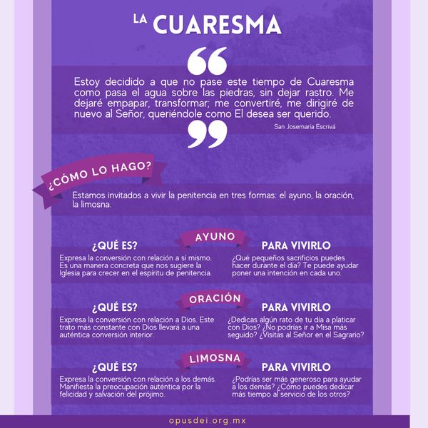 “La llamada del buen Pastor llega hasta nosotros: ego vocavi te nomine tuo, te he llamado a ti, por tu nombre. Hay que contestar —amor con amor se paga— diciendo: ecce ego quia vocasti me, me has llamado y aquí estoy. Estoy decidido a que no pase este tiempo de Cuaresma como pasa el agua sobre las piedras, sin dejar rastro. Me dejaré empapar, transformar; me convertiré, me dirigiré de nuevo al Señor, queriéndolo como Él desea ser querido”. Es Cristo que pasa, 59