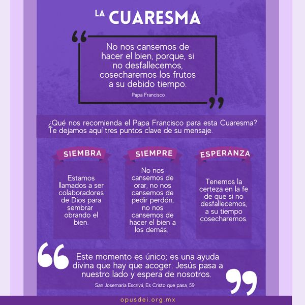 “No nos cansemos de hacer el bien” nos dice el Papa Francisco en el mensaje de Cuaresma.