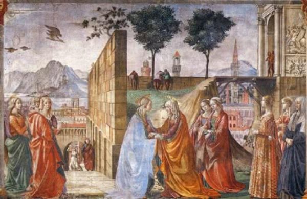 María entró en casa de Zacarías y saludó a Isabel ( Lc 1, 40). Algunas tradiciones locales afirman que el encuentro entre las dos primas tuvo lugar, no en la ciudad misma, sino en una casa de campo donde Isabel —como dice el texto sagrado— se ocultó durante cinco meses (cfr. Lc 1, 24), para alejarse de las miradas indiscretas de parientes y vecinos, y para alzar su alma en agradecimiento a Dios, que la había concedido tamaño beneficio.