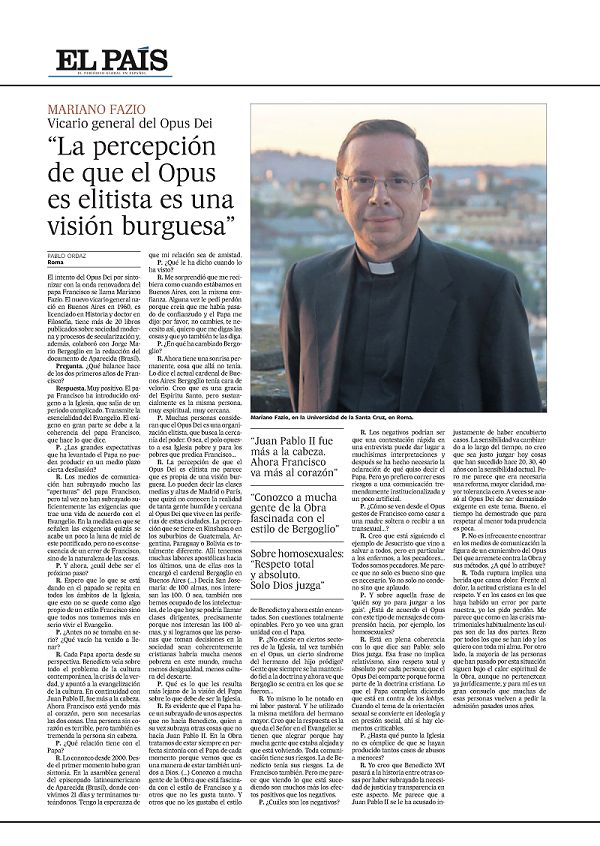 El País “La percepción de que el Opus Dei es elitista es una visión burguesa”