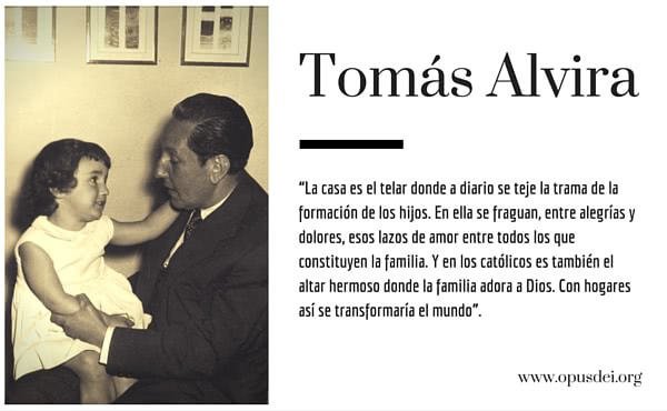 Tomás Alvira era un firme defensor de los padres como primeros, principales e insustituibles educadores de sus hijos, de quienes depende el futuro de la sociedad. “La casa –concluía en su charla a los padres del club Roca- es el telar donde a diario se teje la trama de la formación de los hijos. En ella se fraguan, entre alegrías y dolores, esos lazos de amor entre todos los que constituyen la familia. Y en los católicos es también el altar hermoso donde la familia adora a Dios. Con hogares así se transformaría el mundo”.