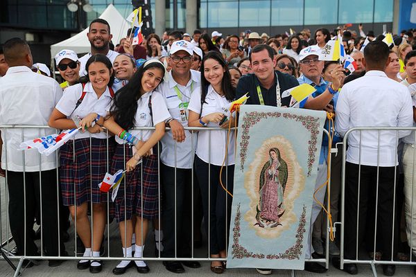 Los peregrinos de la JMJ que están en ciudad de Panamá procedentes de todas partes del mundo salieron a las calles con sus banderas. Por las calles se les oía gritar: “¡Viva el Papa!” o “¡Aquí está la juventud del Papa”.