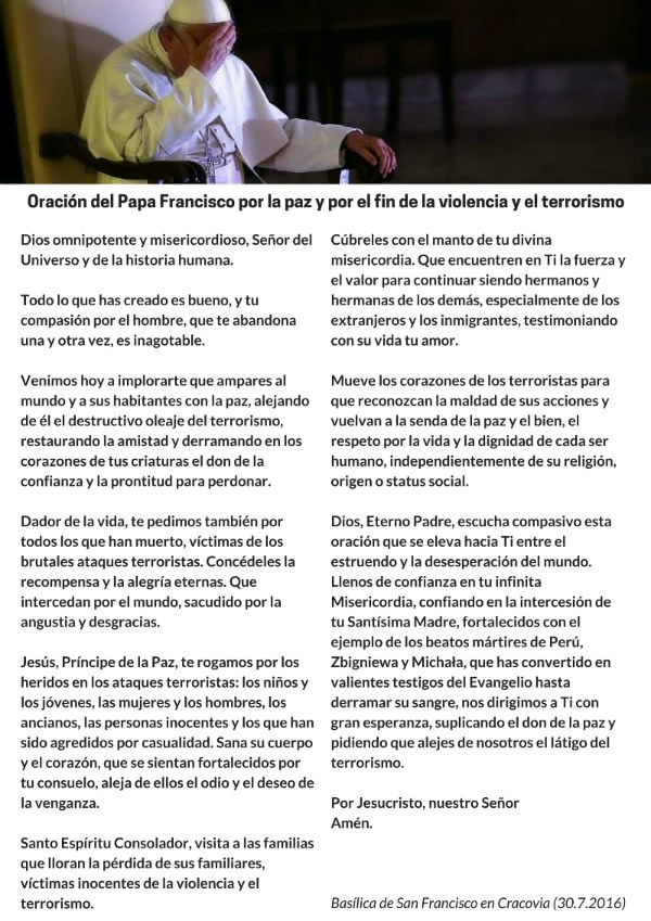 Oración por la paz y por el fin de la violencia y el terrorismo