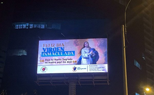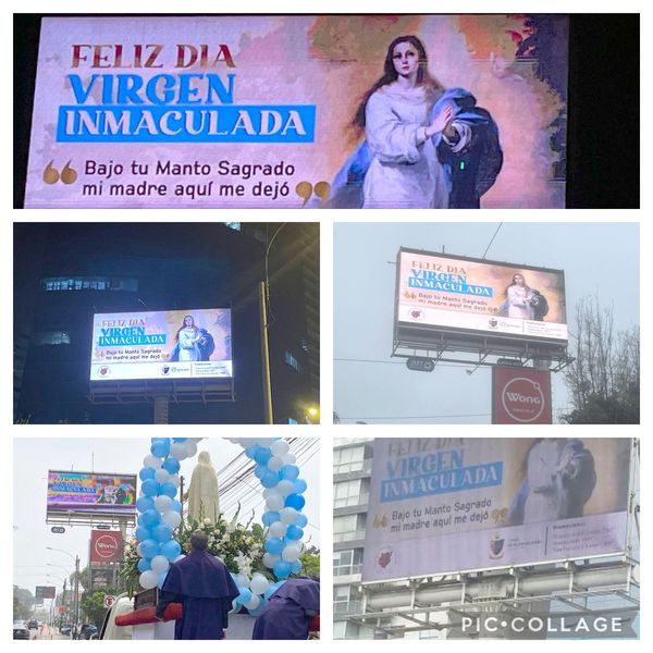 y el saludo especial a la Inmaculada apareció el 8 de diciembre, en 19 paneles digitales en las principales avenidas de Lima con un alcance de aproximadamente 2 millones de personas