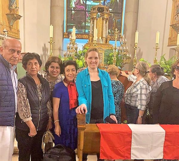 Las Integrantes del club de escolares ALKI (Lima, Perú) que han compuesto una canción sobre Guadalupe titulada: “Tan contenta”, conforman una de las delegaciones. Ángela y Daniela Cangahuala, alumnas del colegio Montealto (Lima), compusieron la música. Sofía Marini, Mariana Aragaki, Almudena Cáceres, escolares; y Andrea Rey, estudiante de la Universidad de Piura, idearon la letra después de leer las cartas que escribió a San Josemaría y la biografía de Guadalupe, viendo los videos y el material publicado en www.guadalupe19.org y en la web del Opus Dei.