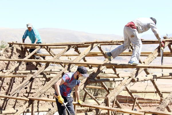 El trabajo consistió en cambiar un tejado de icchu por otro de calaminas metálicas en una de las aulas del Instituto, a fin de que los alumnos reciban clases en mejores condiciones.