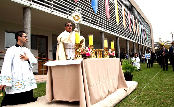 Lima está fra y húmeda. Por la tarde, una tímida llovizna oscurece el color de todo. En el campus universitario el espíritu juvenil se prepara, con alegría y júbilo para participar en la procesión. En un ambiente emotivo, más de 100 personas (estudiantes y trabajadores) participaron en la procesión del Corpus Christi realizada en el Campus Lima de la Universidad de Piura.