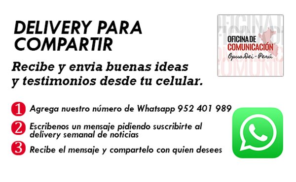 Para poder recibir buenas noticias, ideas y testimonios por Whatsapp, sólo hay que guardar en tus contactos el número de la Oficina de Comunicación del Opus Dei en el Perú (+51 952401989) y mandar un mensaje pidiendo suscribirte al “Delivery para compartir”. O puedes mandarnos un WhatsApp y luego nos añades a tu lista de contactos.