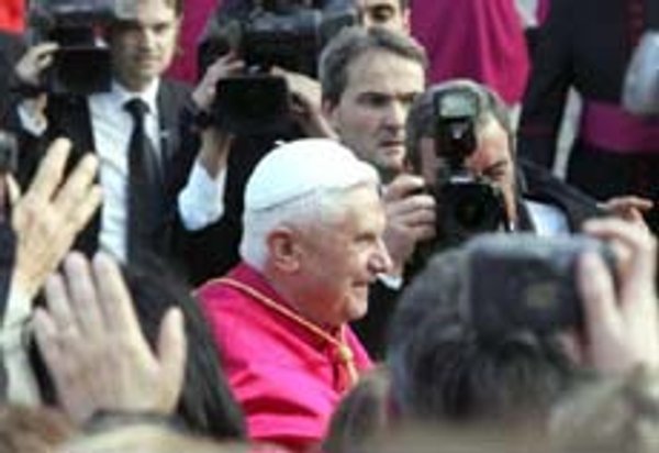 Benedicto XVI hizo ayer por la tarde su primera visita fuera del Vaticano, acudiendo a la basílica de san Pablo Extramuros, en el sur de Roma, para manifestar el lazo inseparable de la Iglesia de Roma con el Apóstol de las gentes. Asistieron a la ceremonia 35 cardenales y algunos representantes de otras confesiones cristianas.