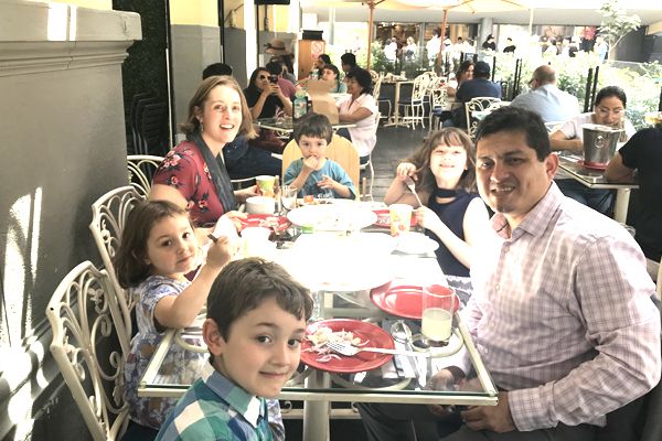 En el 2005, vine a estudiar a Estados Unidos una maestría por dos años. Siempre pensé en volver a Perú a aplicar mis estudios y ayudar al desarrollo de mi país, pero el amor tocó mis puertas: conocí a mi esposa. Sandy es estadounidense, hija de americanos descendientes de irlandeses y polacos. Nos casamos a fines de 2009 y Dios nos ha bendecido con cinco niños: Carolina (11), Alexander (9), Gabriela (6), Peter (4) y Rafael (1).