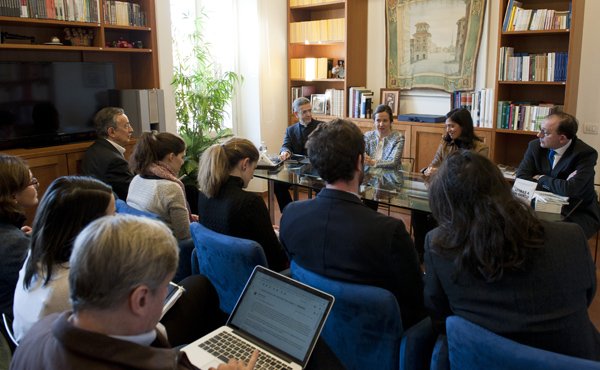 El acto tuvo lugar en la Oficina Internacional de Comunicación del Opus Dei en Roma. Intervinieron María Del Rincón y María Teresa Escobar, autoras del libro y don Francesco Russo, director de la oficina de las causas de los santos de la prelatura del Opus Dei.