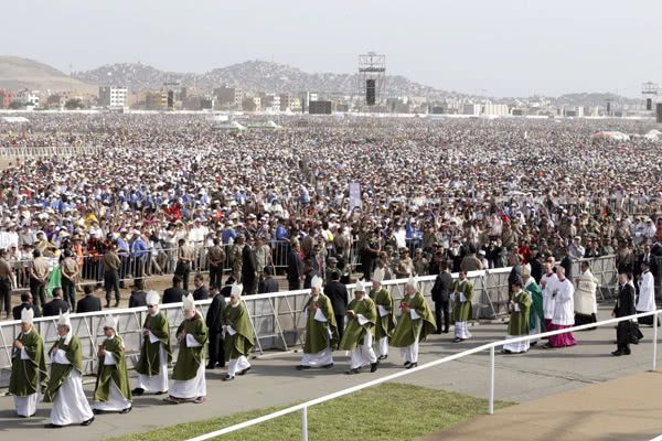 El Santo Padre Francisco llegó a la Base Aérea Las Palmas, para presidir la Santa Misa con la participación de más de un millón setecientos mil personas que acudieron como peregrinos desde distintas partes de la ciudad capital peruana y de diversas ciudades del interior del Perú y países vecinos.