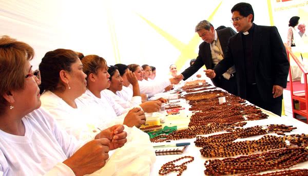 Junto a eso, mujeres y hombres que cumplen prisión en 12 penales del país, con una destreza manual impresionante, han confeccionado en tres meses un total de 300 mil rosarios de madera y mostacilla que ya se han puesto a la venta en centros comerciales con el propósito de ayudar a su reinserción social y parte de cuyos ingresos irán a los mismos reclusos.