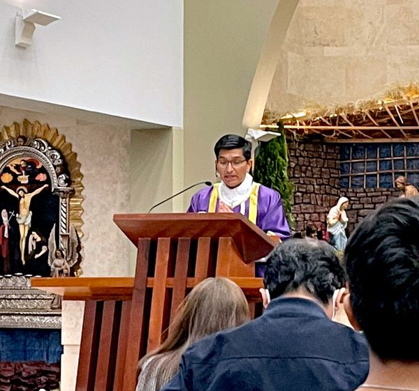 En su homilía, el padre Juan Arbulú mencionó que Jesús es un personaje histórico, que en un momento determinado entra en la historia de la humanidad, pero es Dios. Y entra en la historia para entrar en nuestra historia, para entrar en nuestras vidas.
