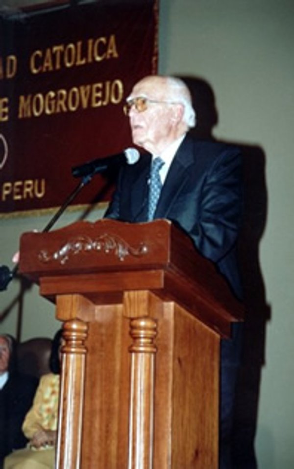 Con la presencia de las más altas autoridades académicas, encabezadas por el Excelentísimo Mons. Jesús Moliné Labarta, Obispo de Chiclayo y Gran Canciller de la Universidad Santo Toribio (USAT), la comunidad de esta Casa Universitaria le rindió, la noche del 6 de diciembre, un homenaje al fundador del Opus Dei, cuyo espíritu universitario buscó siempre una síntesis entre la fe y la cultura. En este evento participaron como expositores los doctores Agustín de la Puente y Candamo, Guillermo Lhomann Villena y Genara Castillo, conocedores cercanos de la labor universitaria de San Josemaría Escrivá.