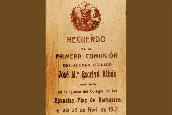 Un religioso escolapio, el padre Manuel Laborda de la Virgen del Carmen —el “padre Manolé”, como le llamaban con afectuosa jovialidad los alumnos—, se ocupó de preparar a Josemaría. Y, en tanto llegara el tan esperado día de la Primera Comunión, le enseñó al niño una oración que mantenía vivo su deseo: —«Yo quisiera, Señor, recibiros con aquella pureza, humildad y devoción con que os recibió vuestra Santísima Madre; con el espíritu y fervor de los santos». Oración que, desde entonces, recitó con mucha frecuencia.