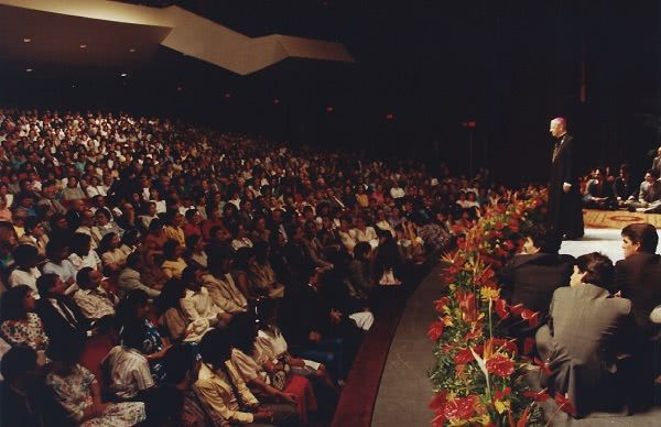 Entre otros temas, don Álvaro habló de la importancia de acudir al Sacramento de la Confesión y del amor a la Virgen, ya que se estaba celebrando en la Prelatura un Año Mariano, por cumplirse el 70º aniversario de la fundación del Opus Dei.