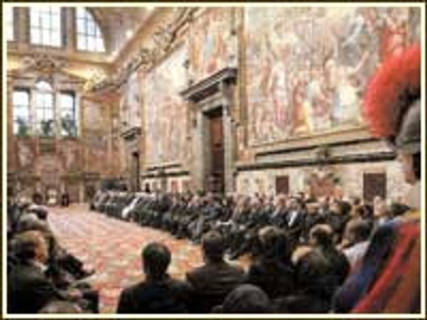 En la Sala Regia, Benedicto XVI, se encontró con los miembros del cuerpo diplomático acreditado ante la Santa Sede, en su primera reunión con ellos desde su elección el pasado 19 de abril.