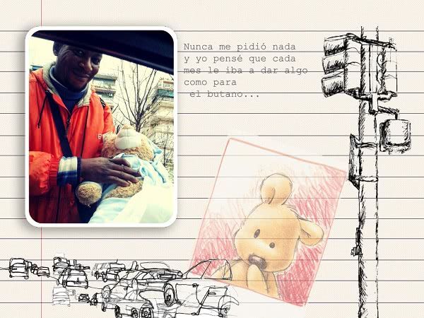 Poco a poco, me fue contando también de su trabajo: Está en nuestro semáforo todos los días de 8 a 9 y conoce a todos los habituales de la zona, clientes y no clientes. De 9 a 10 va a la cuesta de Cervezas Alhambra.