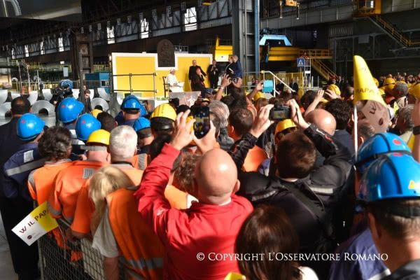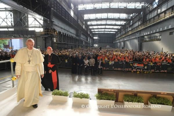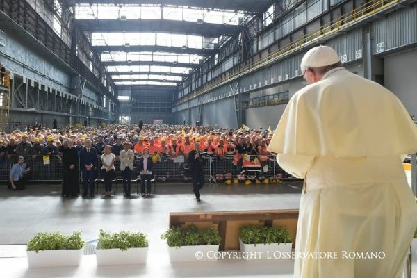 El día 27, durante su visita a Génova, el Papa Francisco mantuvo un encuentro con trabajadores y representantes de la fábrica de acero ILVA, en el que respondió a cuatro preguntas.