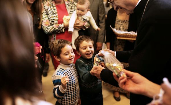 Ricardo, por ejemplo, saludó al Padre larga y efusivamente en guaraní, el idioma oficial del país, junto con el castellano; la familia Tapia le mostró un simpático afiche dándole la bienvenida; los González –curiosamente, dos familias con ese mismo apellido-, los Portillo, Piñanez, los Prieto, y los Colmán le ofrecieron flores y pequeños obsequios, mientras los niños jugaban con globos de colores.