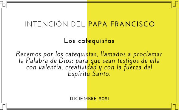 En la intención del Papa Francisco para este mes de diciembre habla del ministerio, misión y vocación de los catequistas. Agradece su entusiasmo por la transmisión de la fe, y los anima a anunciar el Evangelio.
