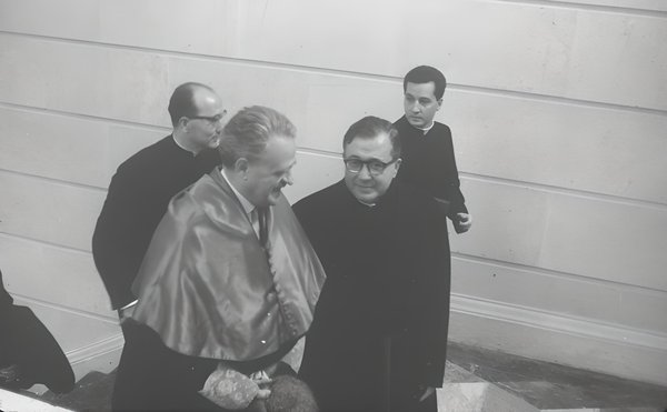 San Josemaría con Álvaro d´Ors, en noviembre de 1964 en la Universidad de Navarra