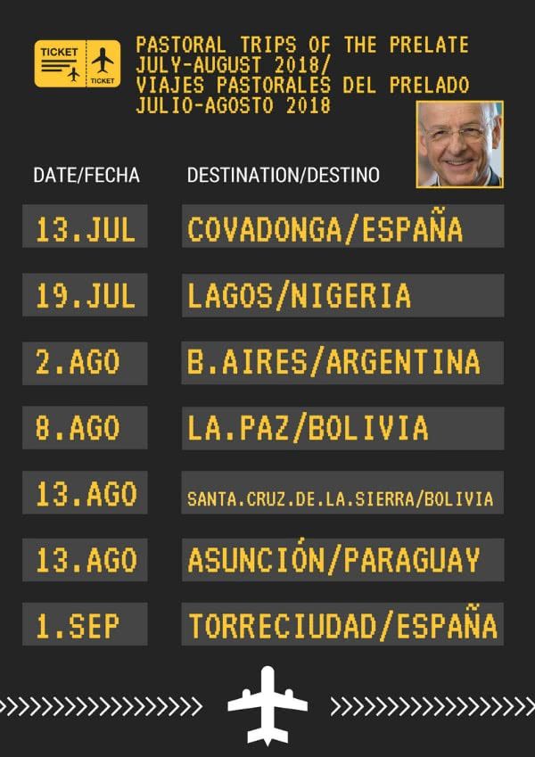 Como ya ocurrió en 2017, Mons. Fernando Ocáriz emprenderá durante los meses de julio y agosto diversos viajes pastorales, que le permitirán saludar a fieles de la prelatura, cooperadores y amigos.