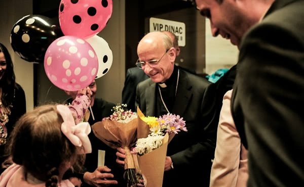 En la sala de recepciones del aeropuerto le esperaban varias familias, con niños yendo y viniendo. Ricardo, por ejemplo, saludó al prelado larga y efusivamente en guaraní, el idioma oficial del país, junto con el castellano; la familia Tapia le mostró un simpático cartel dándole la bienvenida; los González, los Portillo, los Prieto, y los Colmán le ofrecieron flores y pequeños obsequios, mientras los niños jugaban con globos de colores. La atmósfera, llena de cariño, era de serenidad y alegría.