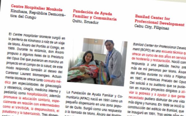 Hace unos meses publicamos el contenido del folleto en la web con un mapa interactivo. Ahora, además, presentamos el documento "Iniciativas sociales y educativas alentadas por Álvaro del Portillo" (en formato PDF).