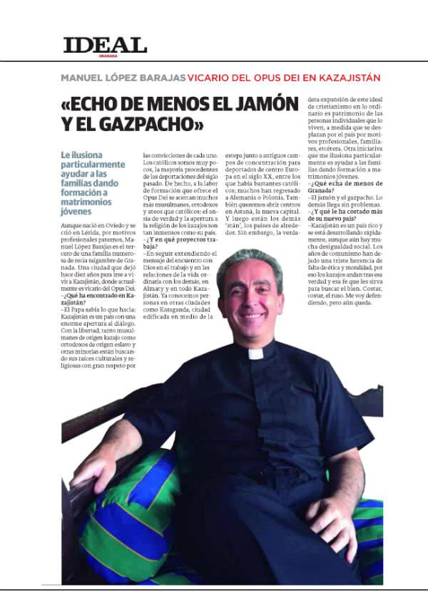Aunque nació en Oviedo y se crió en Lérida, por motivos profesionales paternos, Manuel López Barajas es el tercero de una familia numerosa de recia raigambre de Granada. Una ciudad que dejó hace diez años para irse a vivir a Kazajistán, donde actualmente es vicario del Opus Dei.