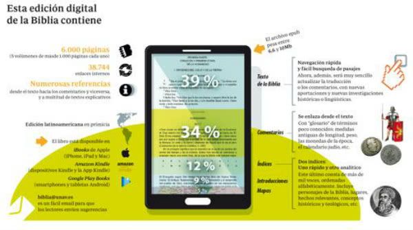 La edición que llevó más de 30 años de trabajo y que fue publicada por Eunsa entre 1997 y 2004 cuenta con abundantes notas, un «lenguaje elegante» y un «castellano accesible», explica a ABC el decano de la Facultad de Teología de la Universidad de Navarra, Juan Chapa, quien recuerda que la digitalización de esta Biblia «hace realidad la versión de bolsillo de la denominada Biblia de la Universidad de Navarra». En papel esta edición suponecinco volúmenes de más de mil páginas cada uno que se traducen en apenas 6 y 7 megabytes (Mb) en su versión digital.