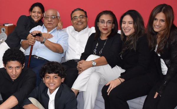 Con su papá, hermana y algunos de sus sobrinos.