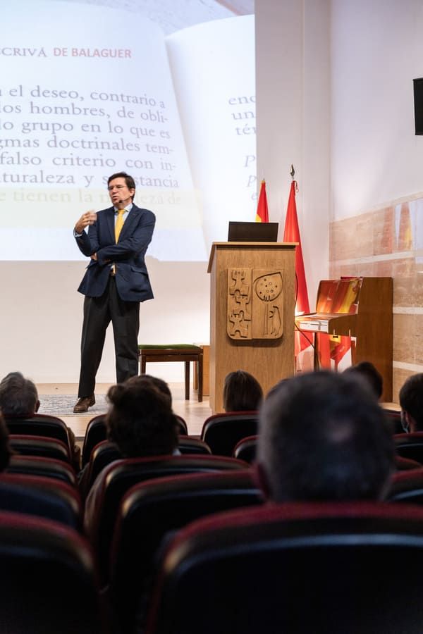 Enrique García-Máiquez durante la conferencia "San Josemaría y la nobleza de espíritu". XII Conferencia de las Artes, San Josemaría Escrivá de Balaguer, en el Colegio Mayor Moncloa.
