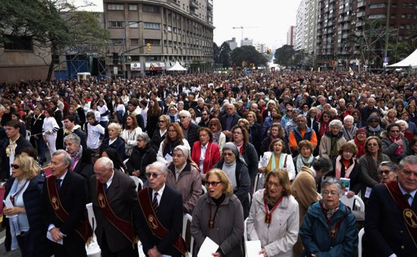 Una tregua en el invierno montevideano, que pese a los anuncios de lluvia dejó incluso en algunos momentos brillar el sol, colaboró a que una multitud se reuniera en la Avda. del Libertador en la Solemnidad de Corpus Christi.