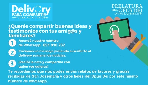 Para poder recibir buenas noticias, ideas y testimonios por Whatsapp, sólo hay que agendar el número de la Oficina 091 910 232 (desde fuera de Uruguay +598 91 910 232) y mandar un mensaje pidiendo suscribirse al “Delivery para compartir”.