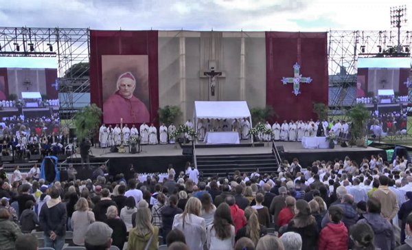 La lluvia que intermitentemente caía sobre Montevideo esa tarde, y que en algunos momentos se hizo copiosa, no impidió que la tribuna Olímpica del estadio Centenario se colmara de una multitud vibrante, alegre y agradecida, que dirigía vivas al nuevo beato y consignas espontáneas como “Y ya lo ves, y ya lo ves, Jacinto Vera beato es“.