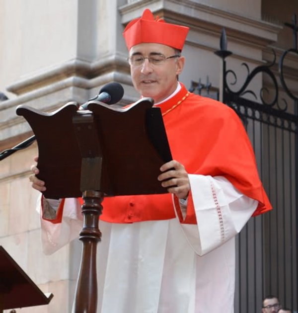 Hemos escuchado la lectura evangélica de las bienaventuranzas, corazón del anuncio de Jesús de Nazaret. Es nuestro anhelo más profundo que podamos vivir en nuestra patria la alegría de esta felicidad prometida a los pobres, los mansos, los limpios de corazón, los misericordiosos, los que trabajan por la paz, los que tiene hambre y sed de justicia… No nos olvidamos de nuestros hermanos que son perseguidos en diversas partes del mundo a causa de su fe y de su compromiso con la justicia. Este rojo púrpura de cardenal hace referencia al color de la sangre, signo de la vida que muchos entregan hoy por Cristo o por fidelidad a su conciencia y que, en el trabajo de cada día, espero también yo entregarla para servir con alegría al Señor en su Iglesia.-