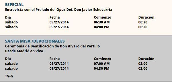 | 27/set | 7.00 | Misa y ceremonia de beatificación |
