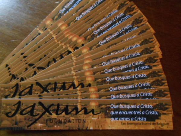 La vista de la ciudad de Jerusalén en los tonos ocres del amanecer es la imagen elegida por la Residencia Del Mar para unos marcalibros elaborados para la ocasión. La gente que quiera colaborar con la iniciativa recibe a cambio uno de estos cartones, donde además hay información sobre el proyecto.